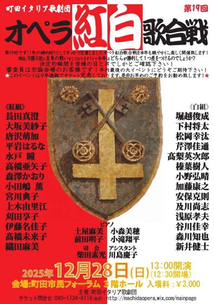 今年で第19回目を迎える町田イタリア歌劇団のオペラ紅白歌合戦!